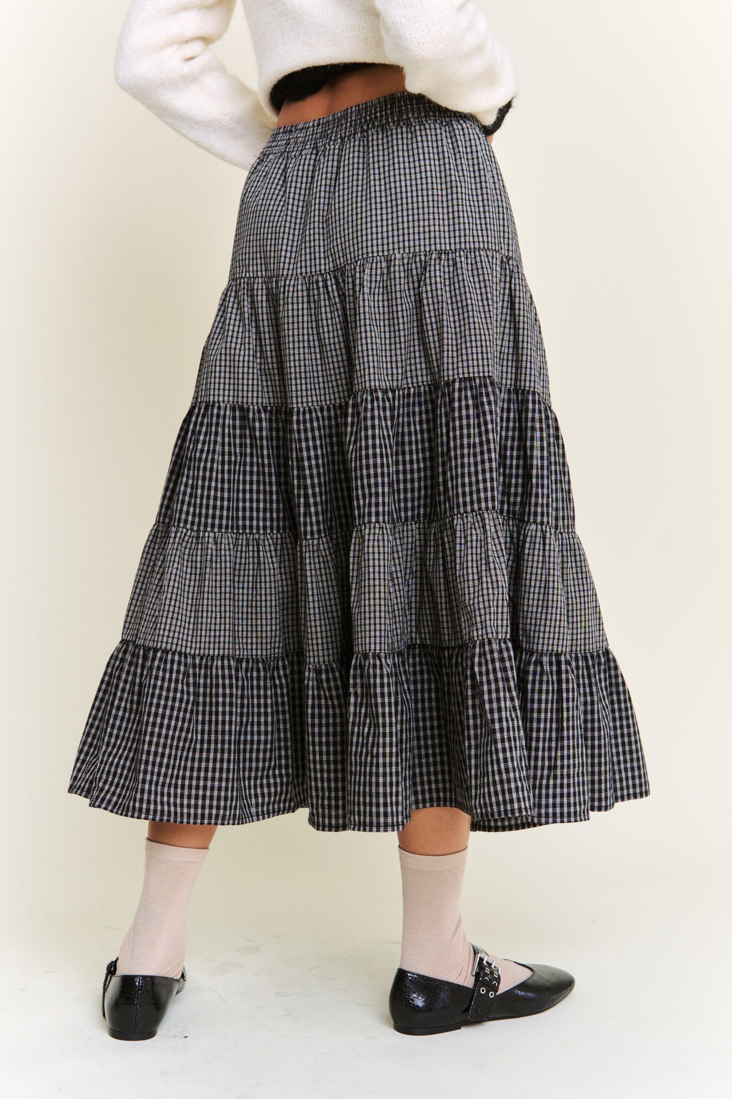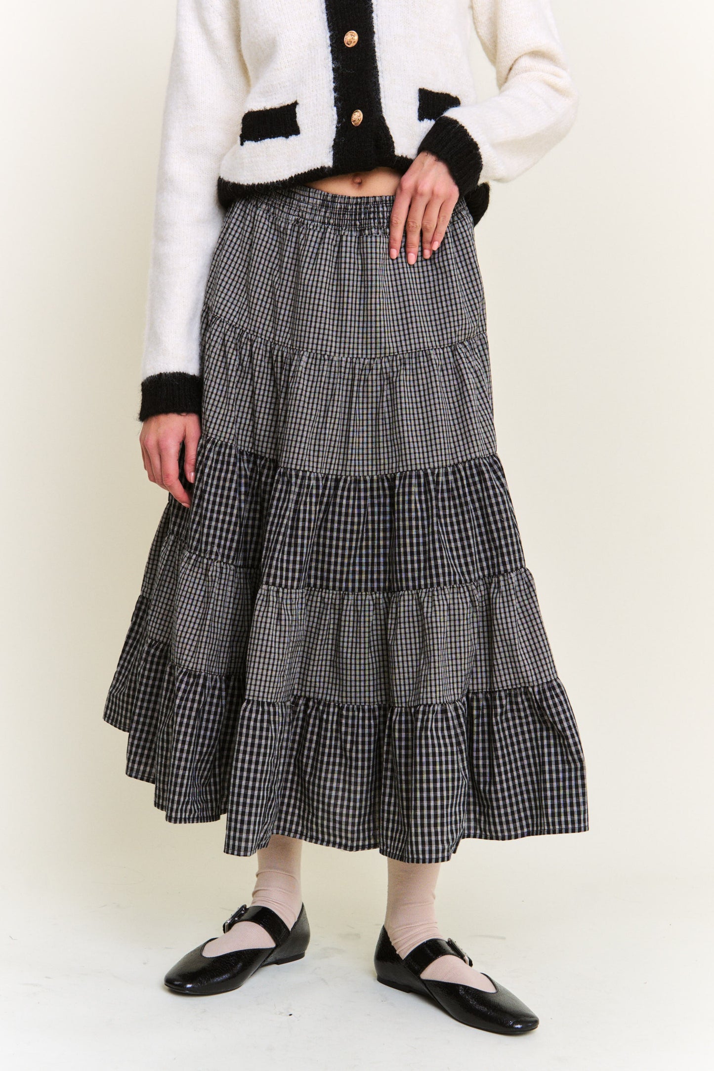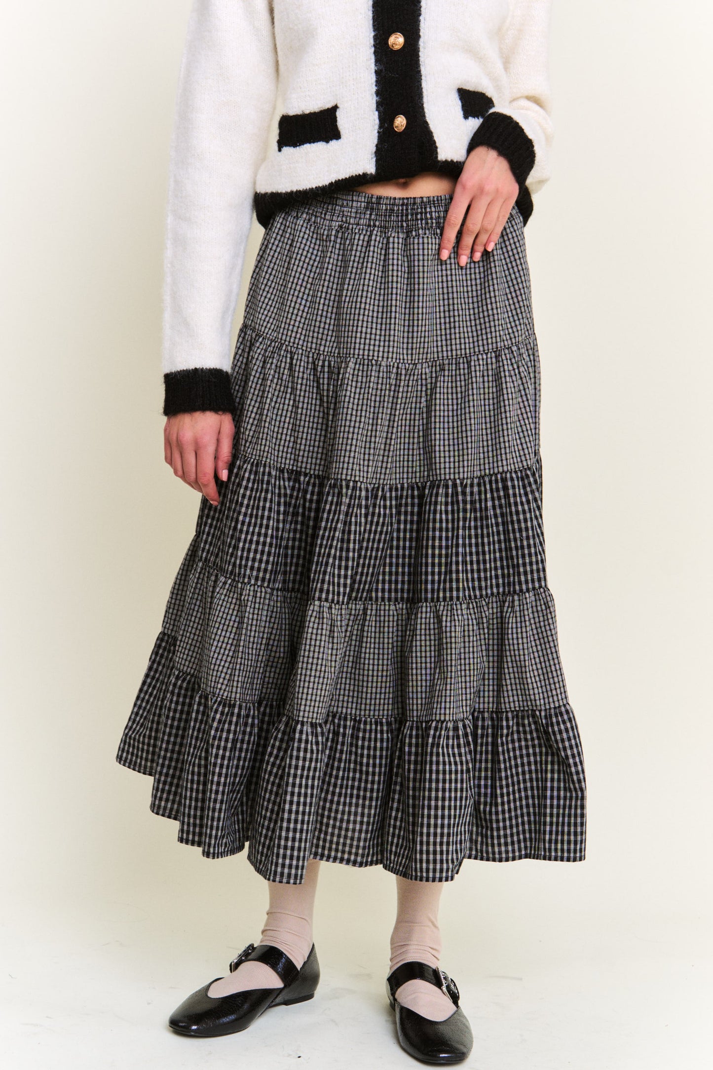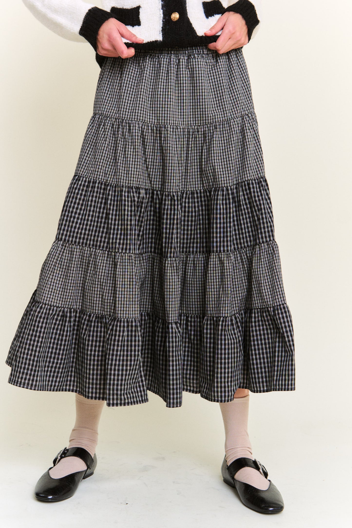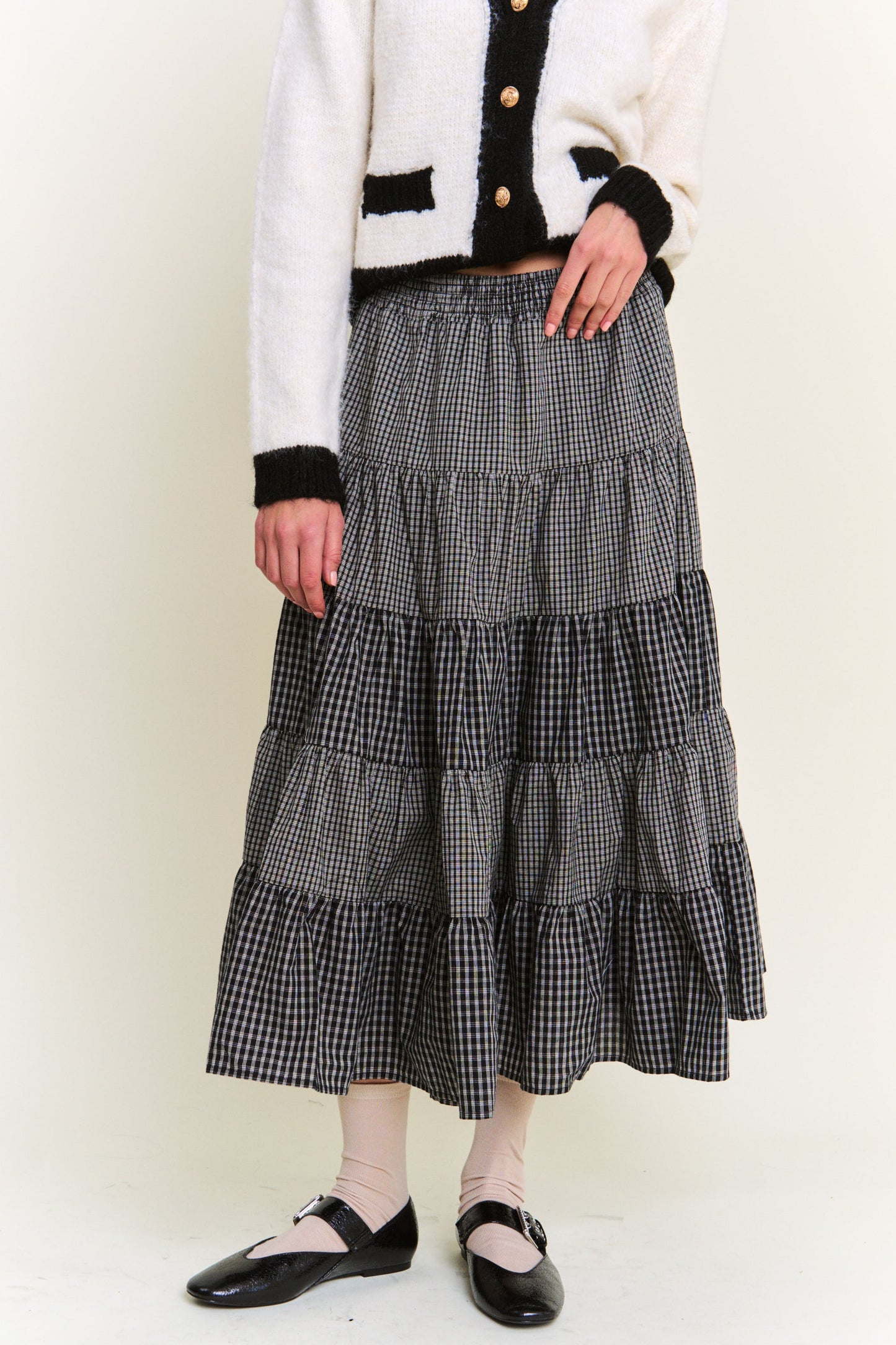 The Gingham Grace Black Maxi Skirt is a timeless piece that blends classic charm with modern sophistication. Featuring a chic black gingham pattern, this flowy maxi skirt offers a flattering, feminine silhouette with effortless movement. Perfect for pairing with a tucked-in blouse or a casual tee, it’s a versatile wardrobe staple that brings graceful style to any occasion.