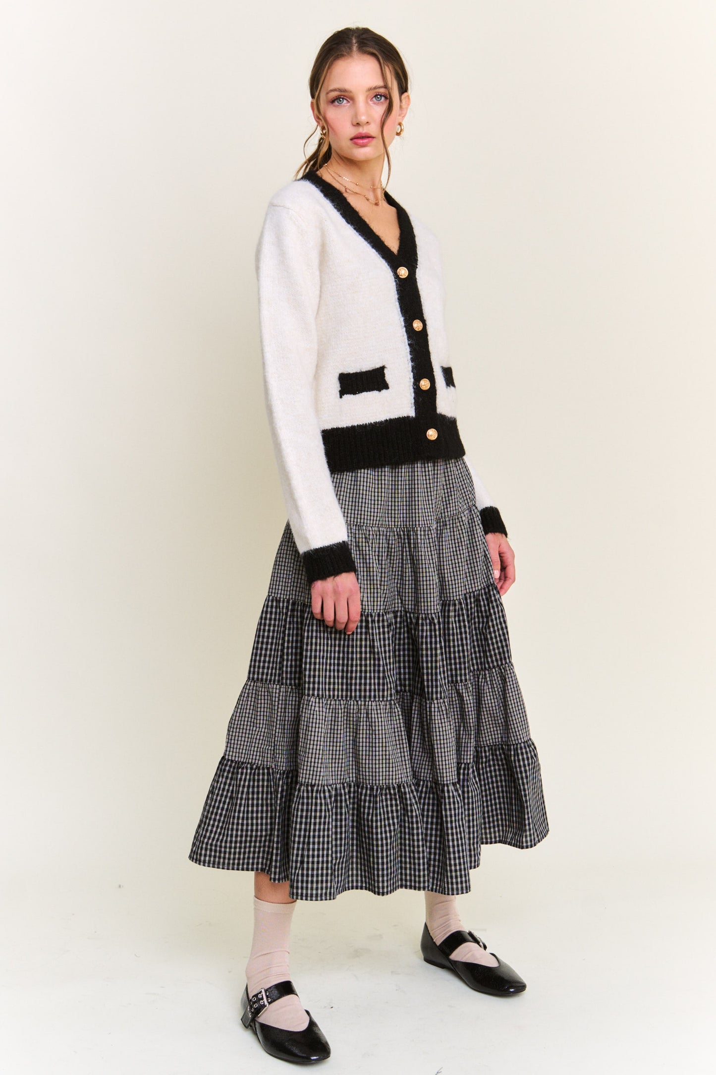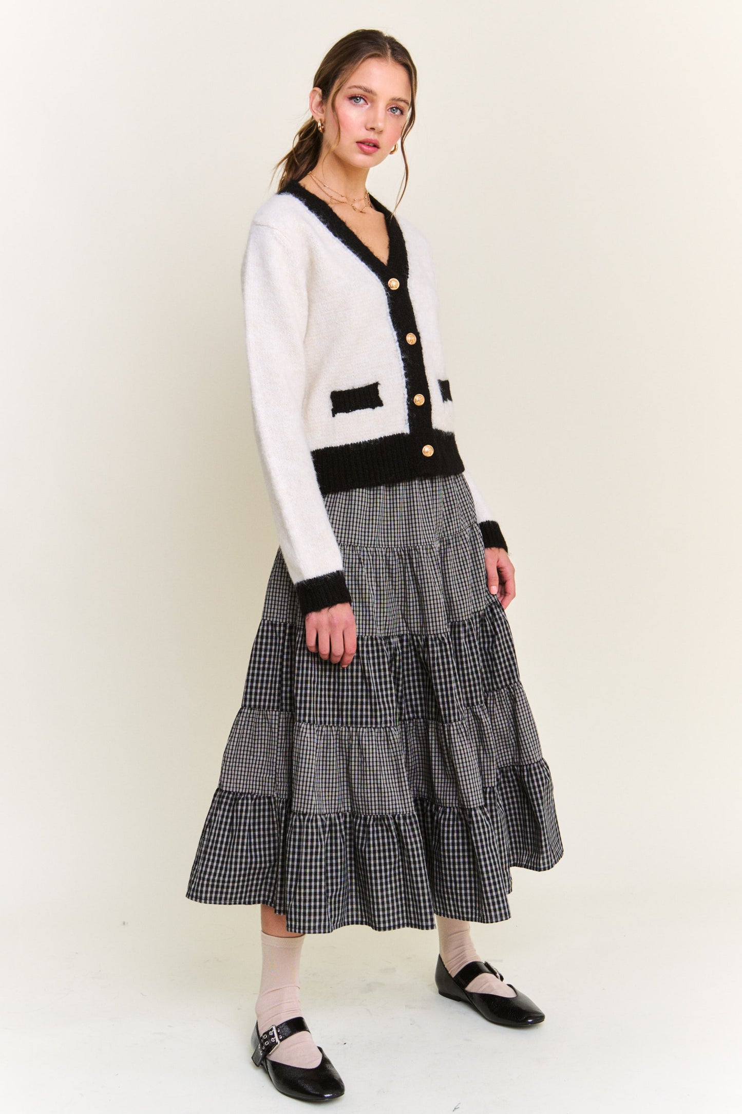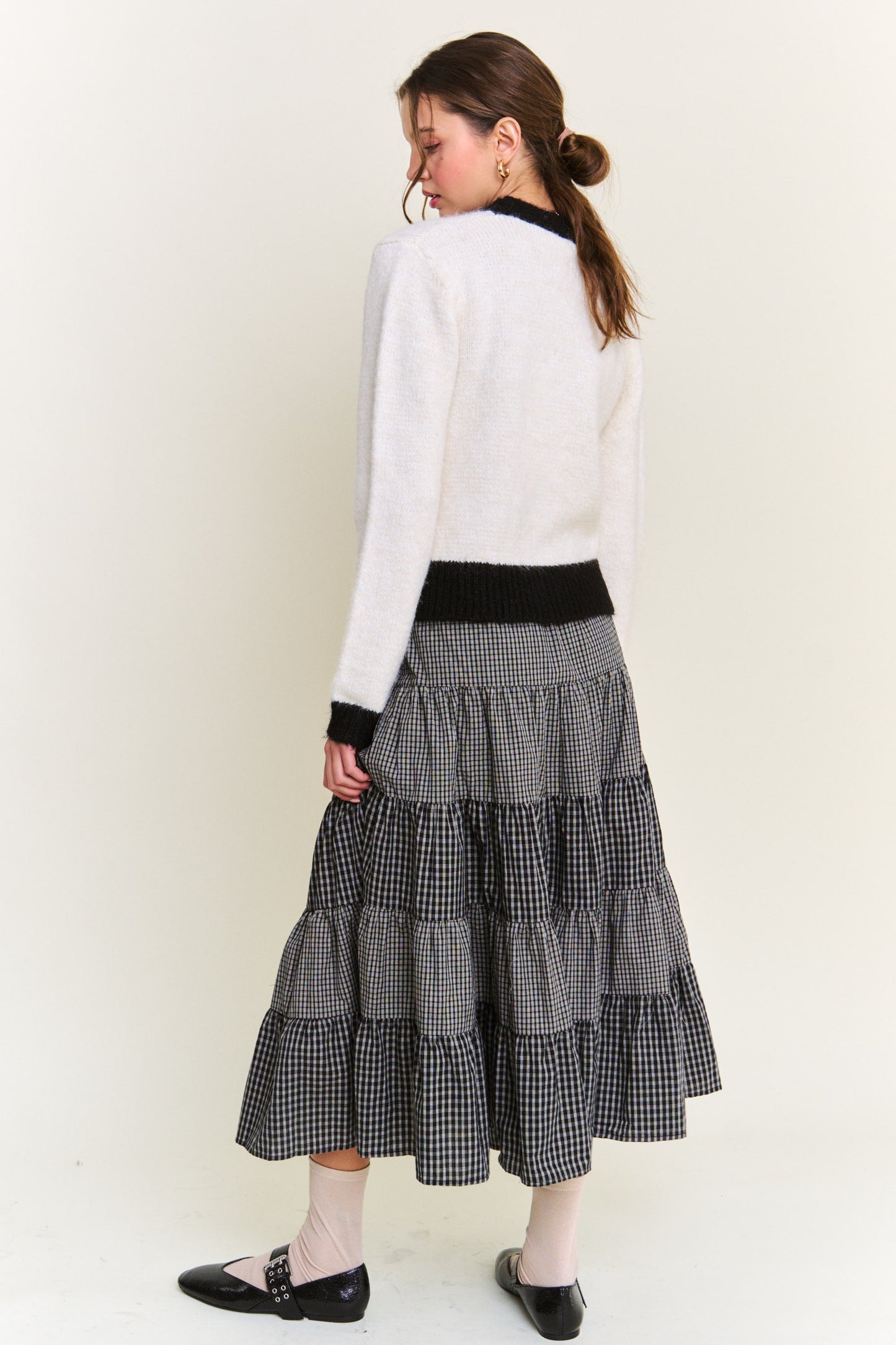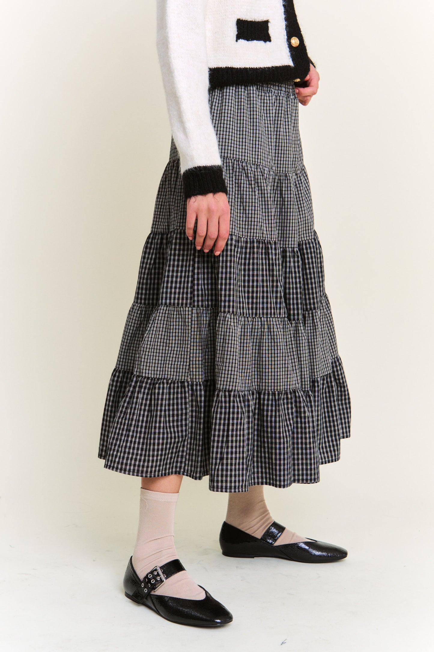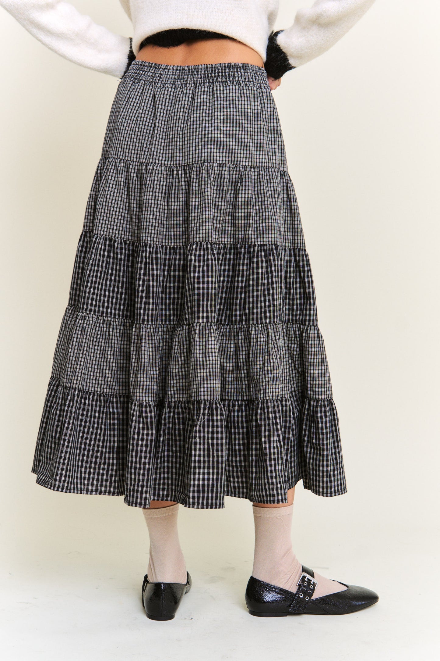 The Gingham Grace Black Maxi Skirt is a timeless piece that blends classic charm with modern sophistication. Featuring a chic black gingham pattern, this flowy maxi skirt offers a flattering, feminine silhouette with effortless movement. Perfect for pairing with a tucked-in blouse or a casual tee, it’s a versatile wardrobe staple that brings graceful style to any occasion.